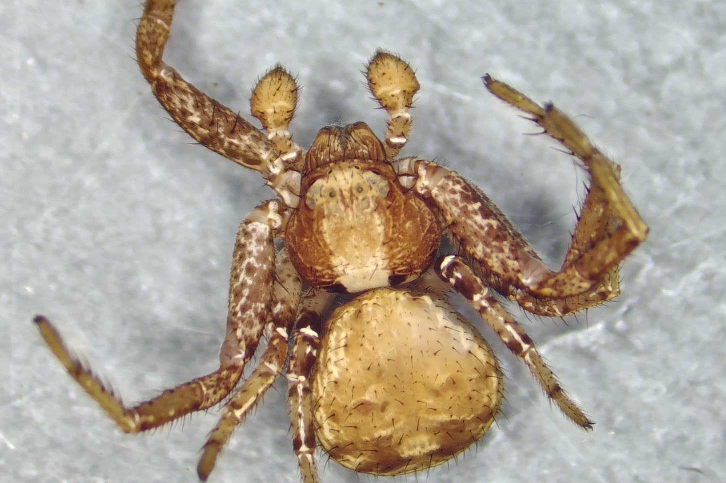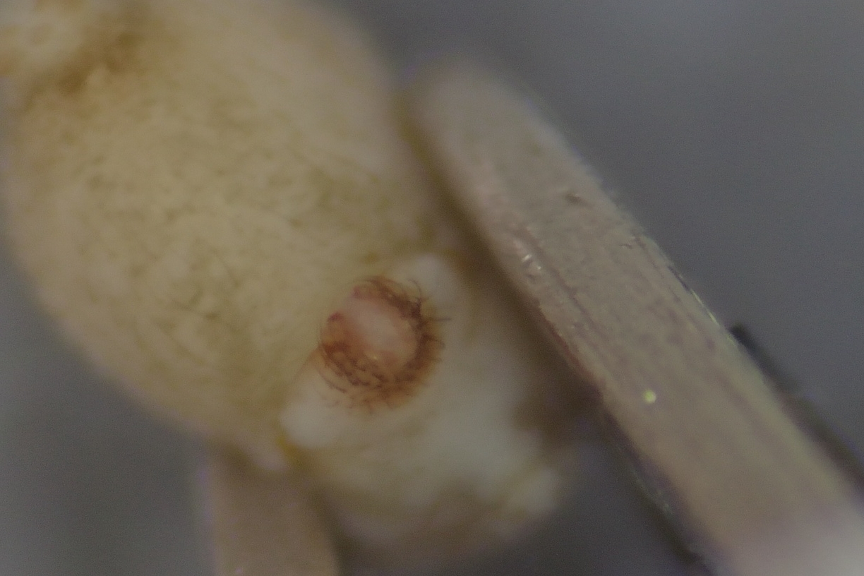 Již 6. novodobého určovacího semináře se zúčastnili Tonda Kůrka, Kryštof Rückl, Filip Solar a Ferda Schenk. Nejzajímavějším determinovaným pavoukem byla zcela jistě samice plachetnatky Palliduphantes insignis s nápadnou, ze zadečku kolmo vybíhající epigyne. Z dalších, méně vídaných pavouků jsme určili samce skákavky Neon valentulus, samici pavučenky Gonatium hilare nebo nedospělé běžníky Xysticus luctator, které jsme tak označili podle nápadné velikosti, typického zbarvení, a koneckonců i výskytu v doubravě. Přesvědčili jsme se také, že z běžného pavouka může vyvstat determinační oříšek, pokud mu chybí nápadná část těla, když nás potrápil samec všudypřítomné pavučenky Ostearius melanopygius, ovšem s chybějícím zadečkem.