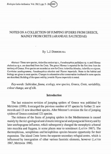 Notes on a collection of jumping spiders from Greece, mainly from Crete (Araneae: Salticidae)