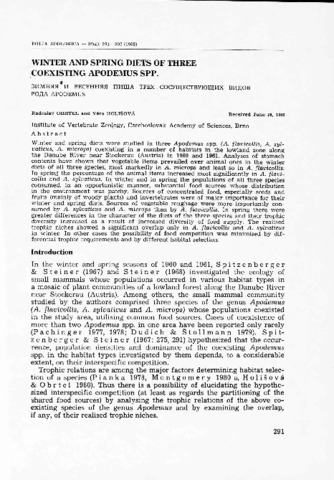 Winter and spring diets of three coexisting Apodemus spp.